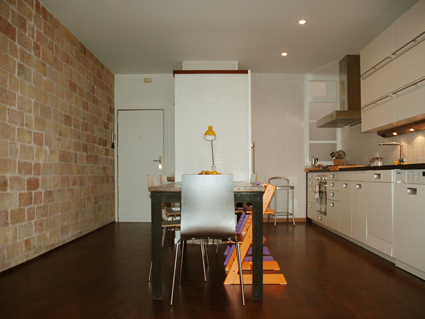 La reforma de este pequeño piso pone el énfasis en el hecho de ubicar la cocina-comedor en un único espacio, justo una vez producido el acceso a la vivienda, en continuidad con el estar, pero de forma claramente diferenciada. Tras una puerta pivotante de gran dimensión se desarrolla el programa de noche con tres dormitorios y dos baños. |